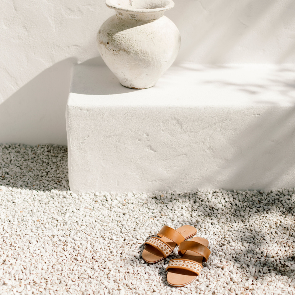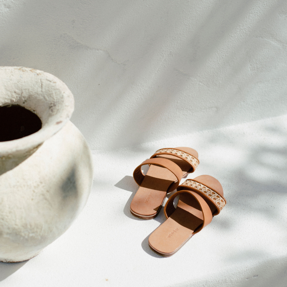 Your must have summer slide is here! Made from the offcuts of our bag production to minimize waste, the Heather Leather and Rattan sandals will...